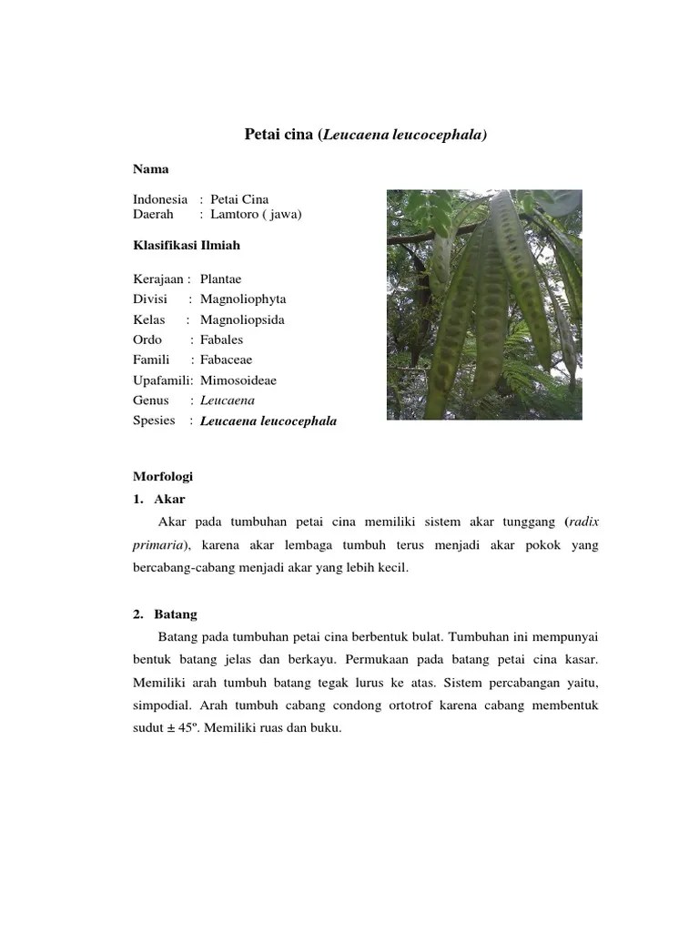 Contoh Makalah Deskripsi - deskripsi Petai Cina - Pengertian, struktur, cara, jenis, ciri.